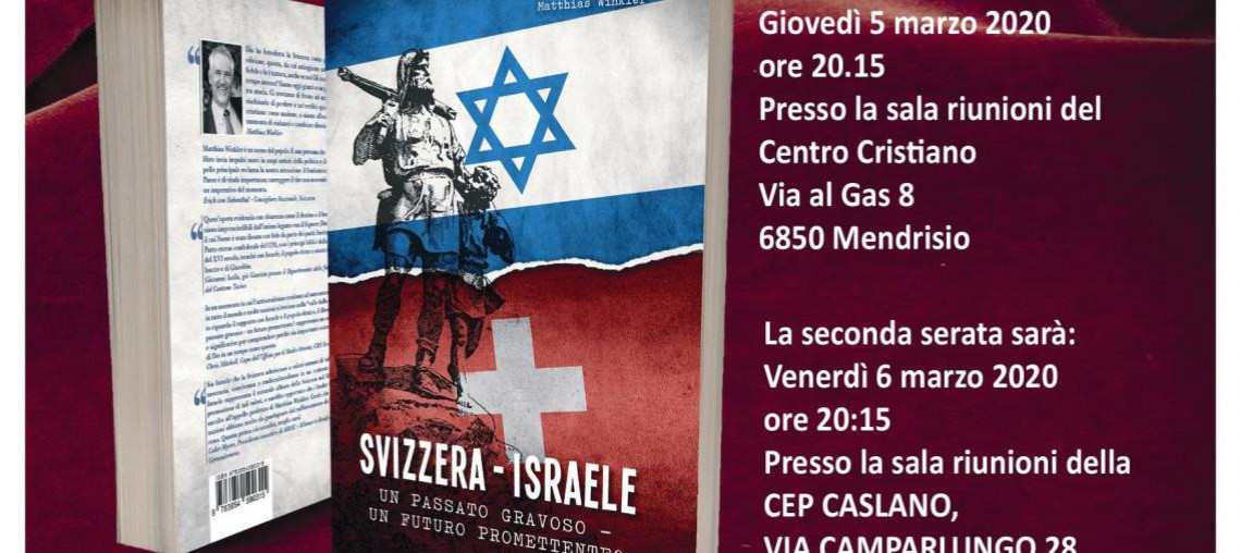 Grazie alla preziosa collaborazione con il Centro Cristiano MPE di Mendrisio e alla CEP di Caslano, la Fondazione DEMIAP vi invita a 2 serate con Matthias Winkler, autore del Libro “SVIZZERA – ISRAELE Un passato gravoso – Un futuro promettente”.