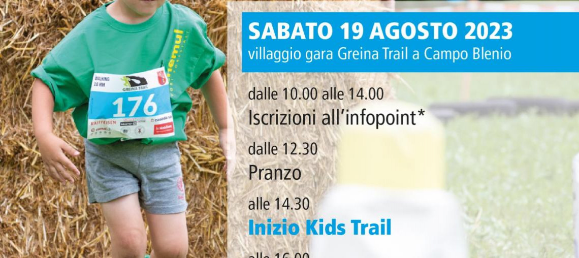 Vi informiamo che, per velocizzare l’iscrizione, è possibile scaricare il formulario per il Kids Trail sul sito https://greinatrail.ch/kids-trail/, da compilare e consegnare allo stand della SSS Blenio, in alternativa sarà possibile iscriversi direttamente sul posto.