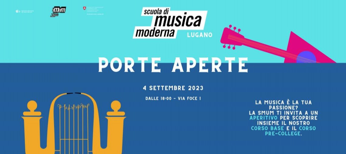 La Scuola di Musica Moderna terrà una serata di porte aperte nella sede di Lugano, in via foce 1, lunedì 4 settembre 2023 dalle ore 18:00, per offrire a chi desidera avvicinarsi alla musica la possibilità di immergersi in questo mondo e a chi vuole approfondire le proprie conoscenze in campo musicale l’opportunità di conoscere gli insegnanti della Scuola.