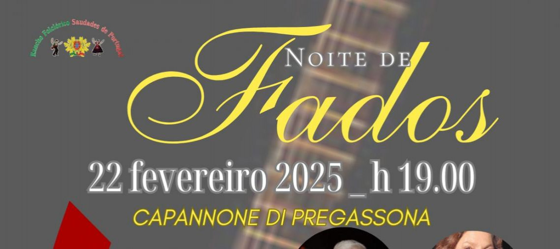 Una serata dedicata al FADO, musica popolare portoghese, patrimonio dell'UNESCO, tipico soprattuto delle città di Lisbona e Coimbra. Per la prima volta nel sottoceneri verranno due rinomati fadisti e i suoi musicisti direttamente dal Portogallo! Potremmo sederci in un tavolo, in un'atmosfera romantica, deliziarci con gastronomia portoghese chiudere gli occhi ascoldando il fado come se fossimo in una notte a Lisbona.