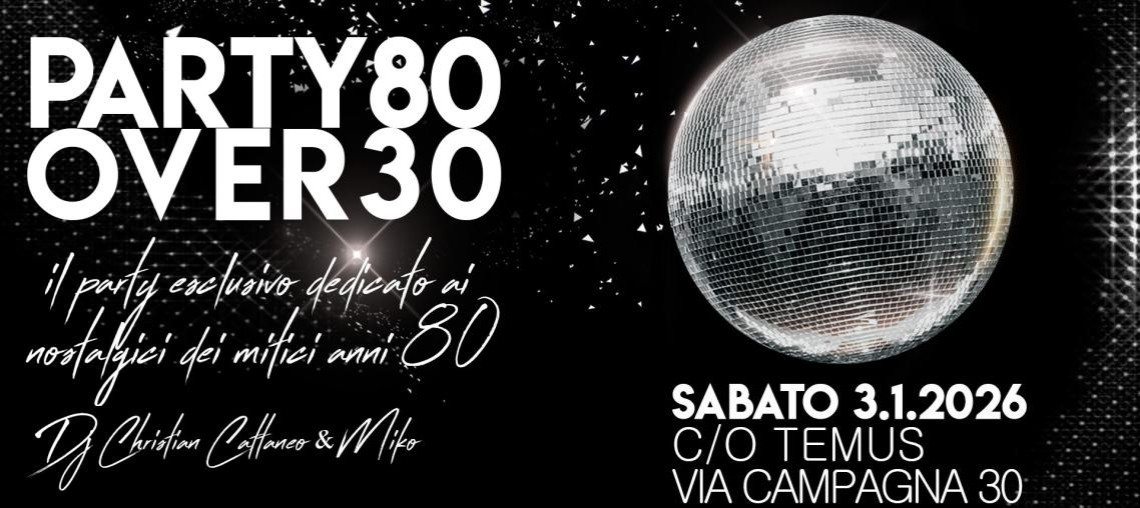 L’originale party over 30 dedicato ai nostalgici dei mitici anni '80 del Temus! In pista si balla partendo dagli anni ottanta raggiungendo gradualmente gli anni novanta!