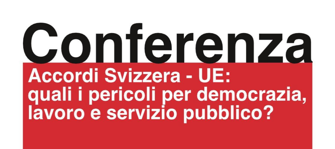 Dopo il grande successo della prima conferenza, il Fronte per la neutralità e il lavoro "No UE - No NATO" ha deciso di proporre una seconda data per l'evento. Discuteremo delle ripercussioni che il nuovo pacchetto di accordi Svizzera-UE avrà sul nostro sistema politico-istituzionale, sul servizio pubblico (dal mercato energetico ai trasporti, senza dimenticare la questione degli aiuti di Stato) e sulle tutele dei lavoratori. Seguirà rinfresco offerto.