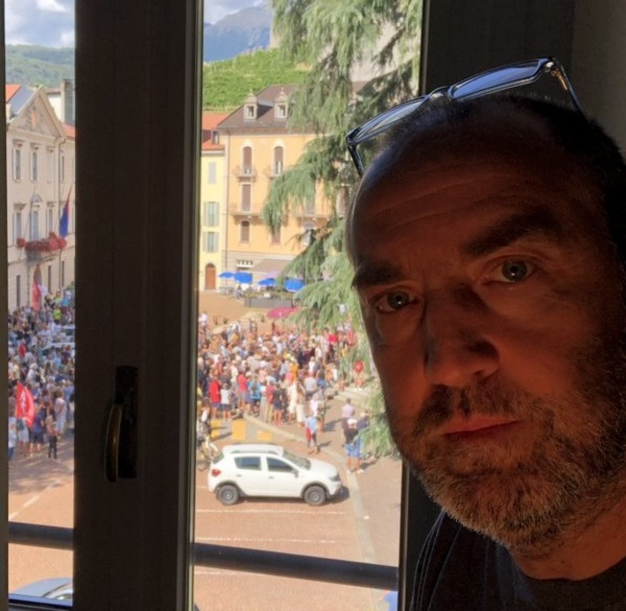 Ha espresso le sue perplessità su Twitter, postando un selfie dal suo Ufficio, con alle spalle la gente in corteo.