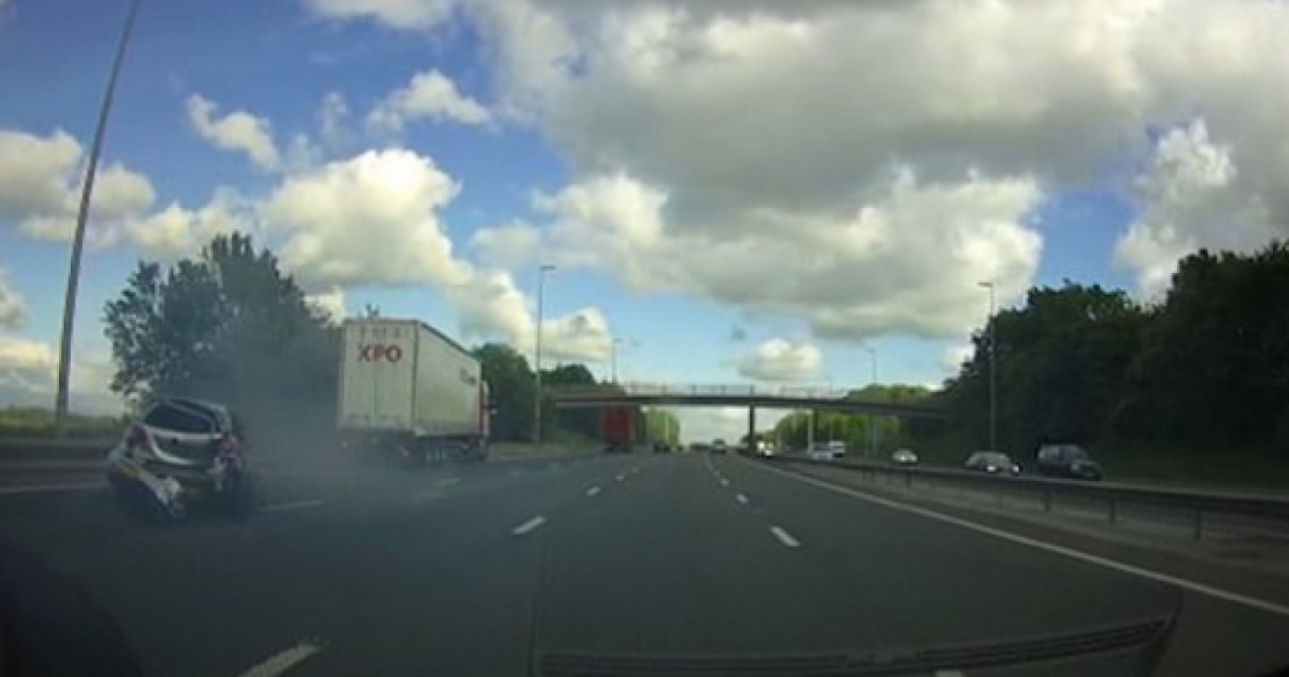 INGHILTERRA – È un incidente choc quello avvenuto sull’autostrada inglese M6 vicino a Preston, nel Lancashire. Come testimoniano le immagini registrate da una dashcam, un camion ha travolto una macchina con a bordo due adulti e un bambino.
