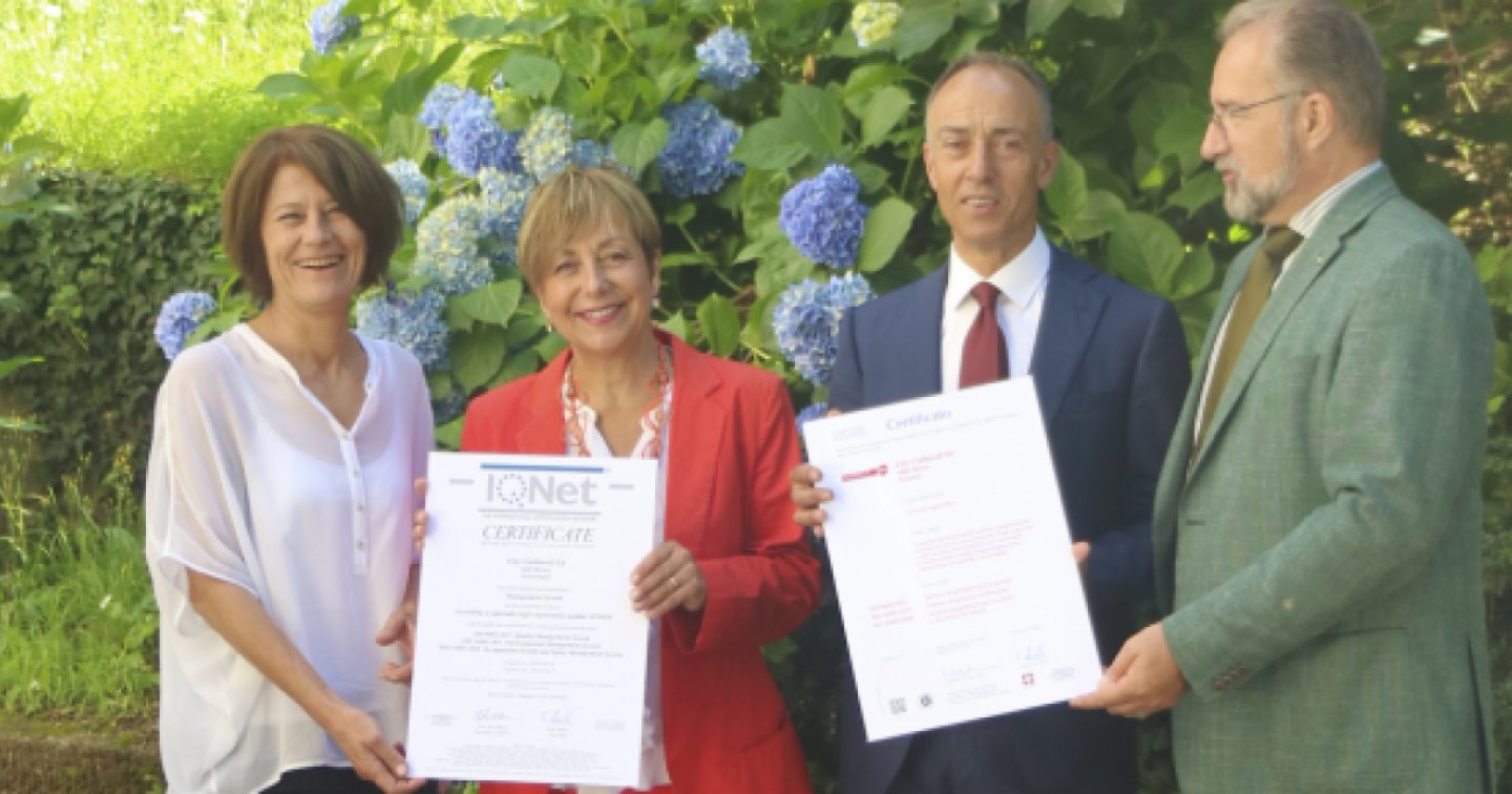 Nella foto da sinistra: Brigitte Reif Coordinatrice Sistema QAS, Avv. Lorenza Cattaneo Colombo Presidente City Carburoil, Rocco Cattaneo Amministratore Delegato City Carburoil, Renzo Viganò Lead Auditor SQS