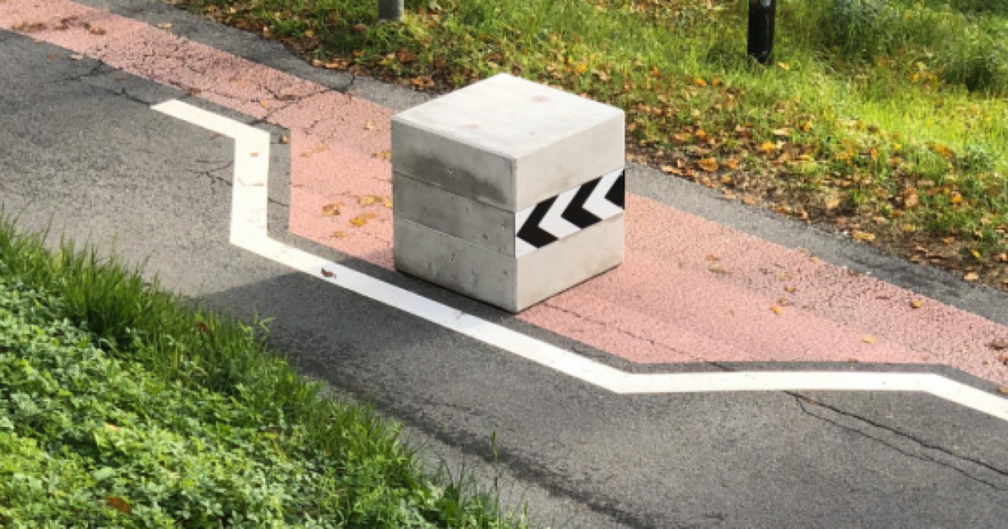 Ieri mattina un terzo automobilista ha dovuto fare i conti con uno dei blocchi di cemento posizionati in Via ai Grotti a Rancate