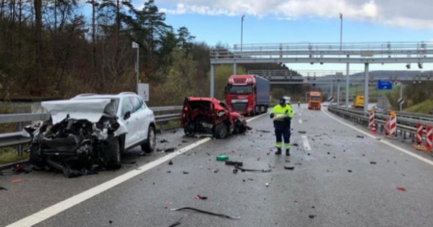 A provocare l'incidente è stato il conducente della Porsche che viaggiava ad alta velocità in un punto in cui le corsie vengono ridotte da due a una a causa di un cantiere. L'uomo si è accorto all'ultimo momento che la corsia di sorpasso era chiusa e si è bruscamente spostato su quella di destra investendo in pieno una Renault Kadjar che era ferma davanti a un camion con rimorchio.
