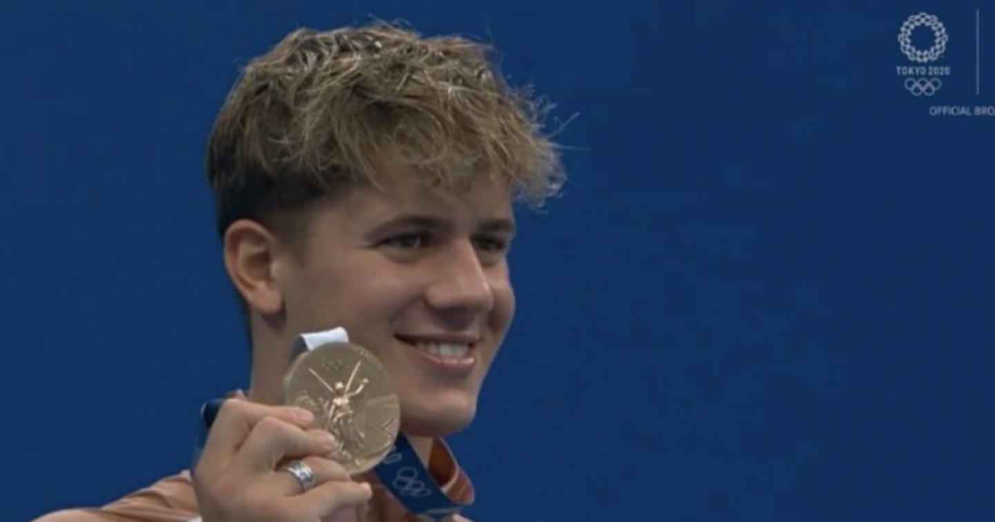 "C---o ho fatto una medaglia alle Olimpiadi", si è emozionato il nuotatore 20enne, piazzatosi terzo nei 100m delfino alle spalle di Caeleb Dressel, nuovo primato mondiale in 49"45, e Kristof Milak