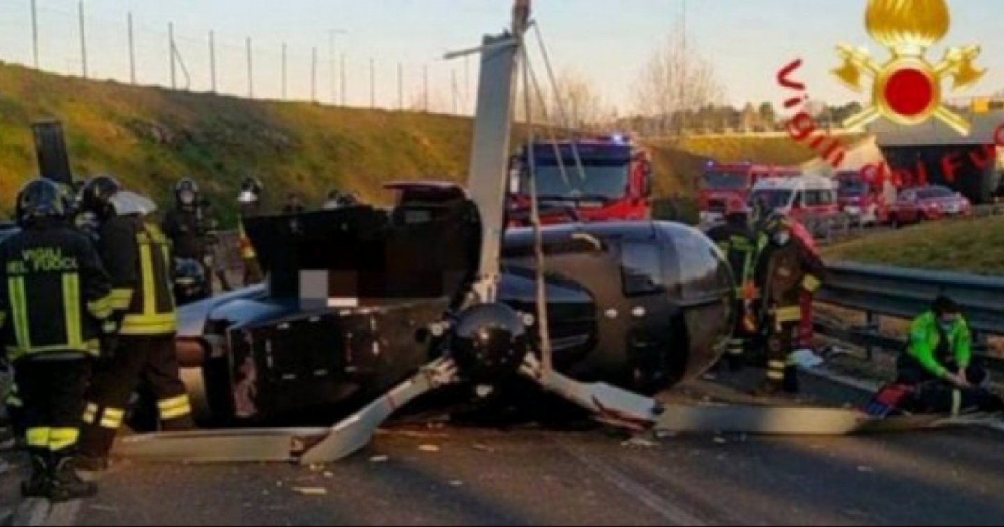 L'elicottero, probabilmente decollato a non molta distanza dal luogo dell'incidente, è caduto proprio sulla sede stradale. Nell'impatto non sono fortunatamente rimasti coinvolti automezzi in transito. La cabina dell'elicottero, riversa su un lato, è rimasta praticamente intatta.