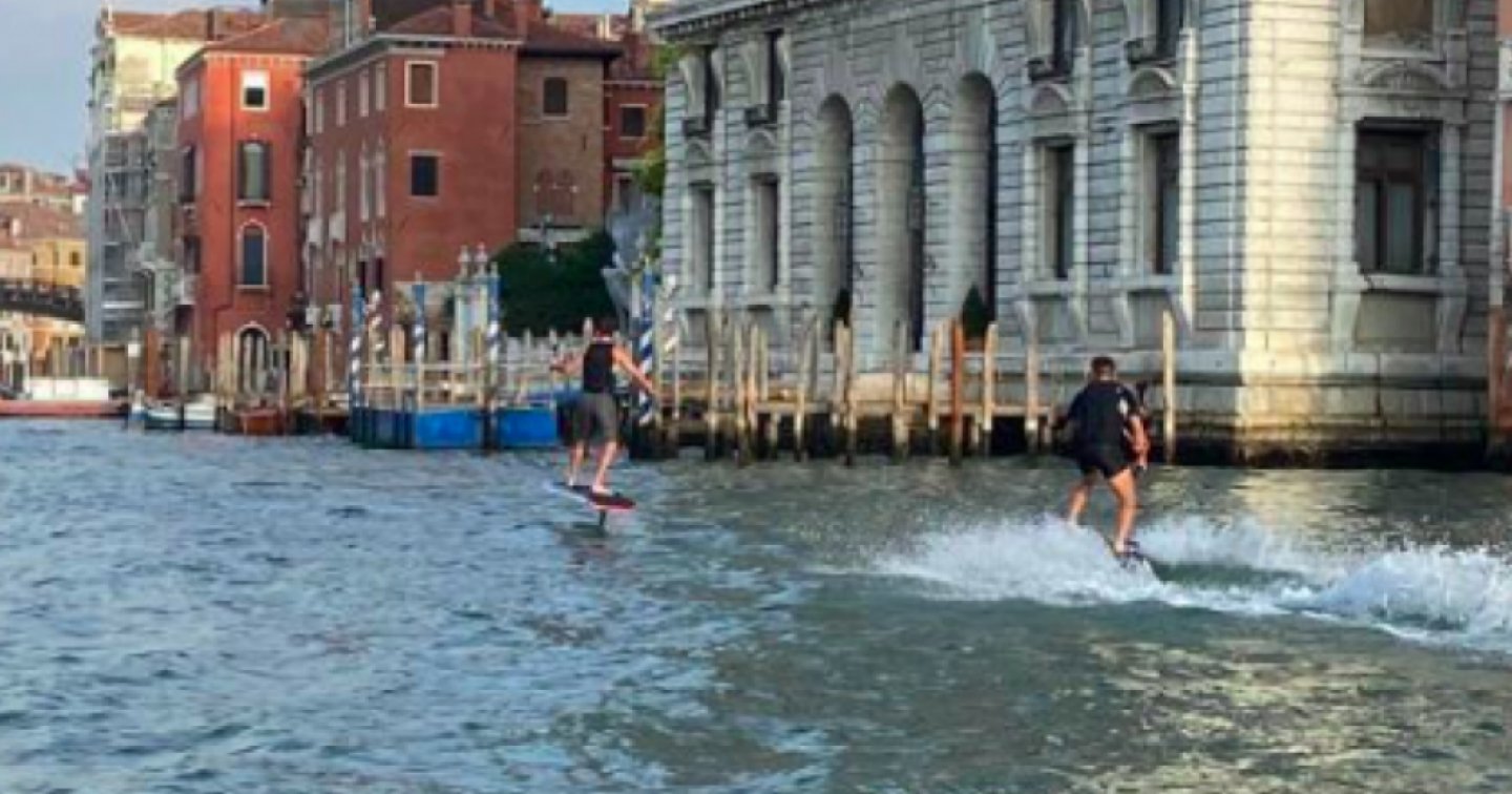 VENEZIA – Sta facendo il giro del mondo la storia che arriva da Venezia, dove due 'surfisti' hanno pensato bene di 'cavalcare' Canal Grande con due tavole da surf elettriche. A Venezia si è già visto di tutto, ma i 'surfisti' sul Canal Grande ancora non si erano visti.
