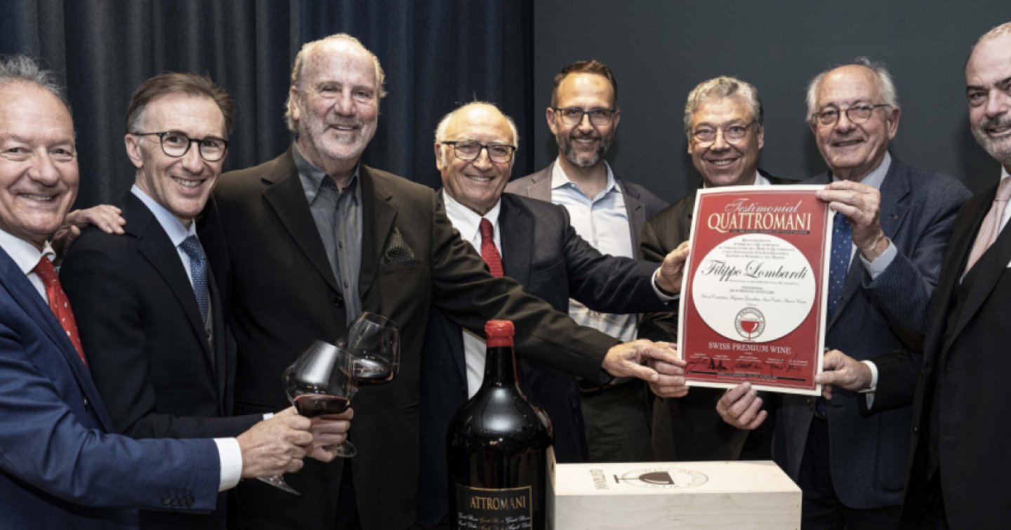 All’occasione è intervenuto con una brillante “laudatio” il presidente del Film Festival Locarno Marco Solari che ha avuto parole di plauso per Filippo Lombardi ed anche per le prodezze del Quattromani: “Un Merlot che rappresenta al meglio le qualità della terra ticinese in Svizzera e del mondo”. Durante la serata hanno brindato all’eccellenza dell’annata 2021 di Quattromani anche i quattro attori del merlot Quattromani (Guido Brivio, Angelo Delea, Feliciano Gialdi e Claudio Tamborini) che da oltre un ventennio, si sono resi protagonisti di un exploit dal successo internazionale. Infatti, dall’amicizia e dalla passione che lega i quattro dinamici amici è nato, nel 2000, un vino rappresentativo della migliore potenzialità vitivinicola ticinese.