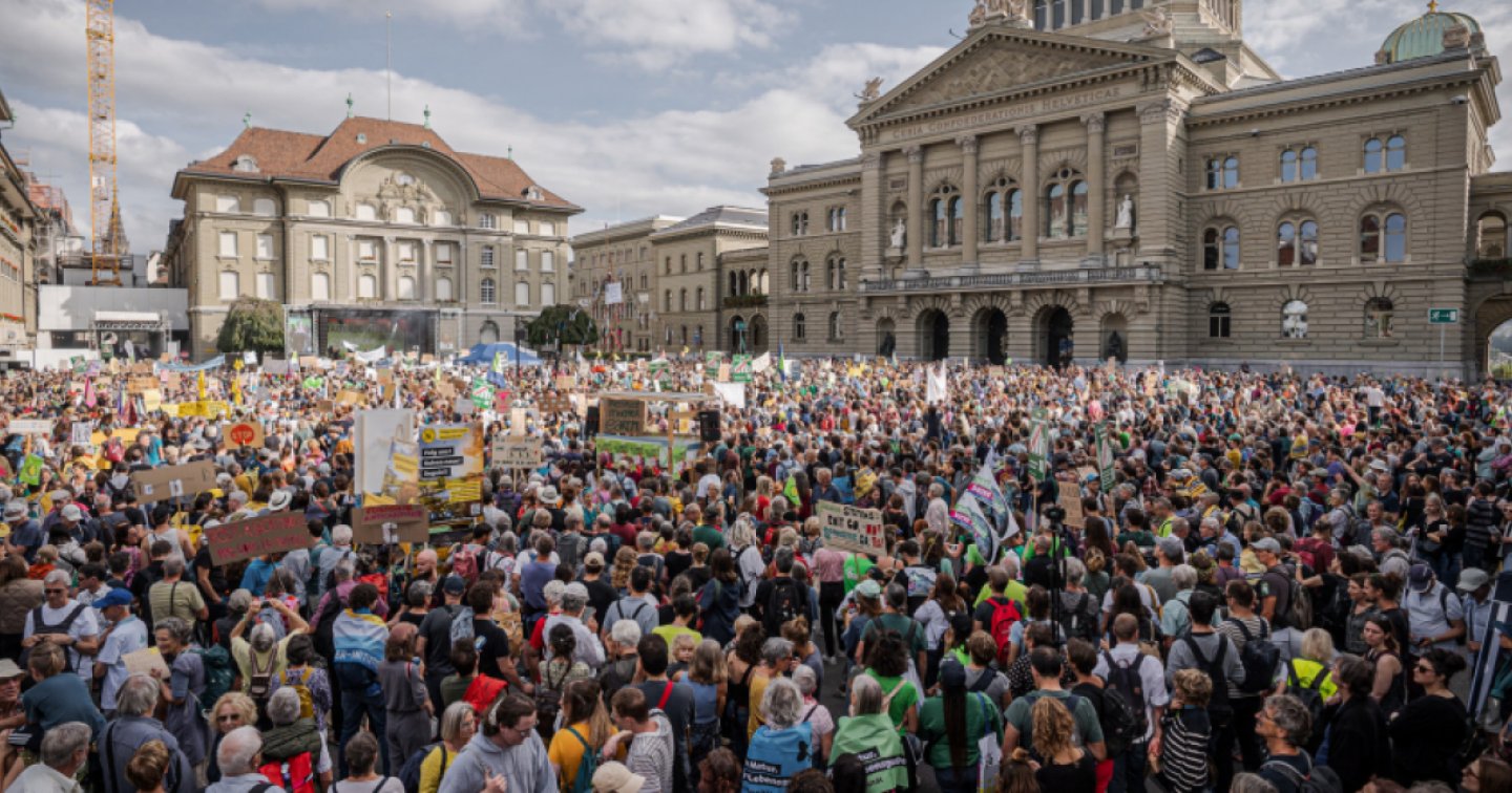 BERNA - Personale di cura, agricoltrici e agricoltori, tecnici dell'edilizia, anziane e anziani, amanti della vita all'aria aperta e gruppi per i diritti umani, per un corteo che chiede giustizia climatica. Erano molte le categorie di persone presenti oggi in una manifestazione a Berna, dove sono scesi in piazza circa 60mila manifestanti.