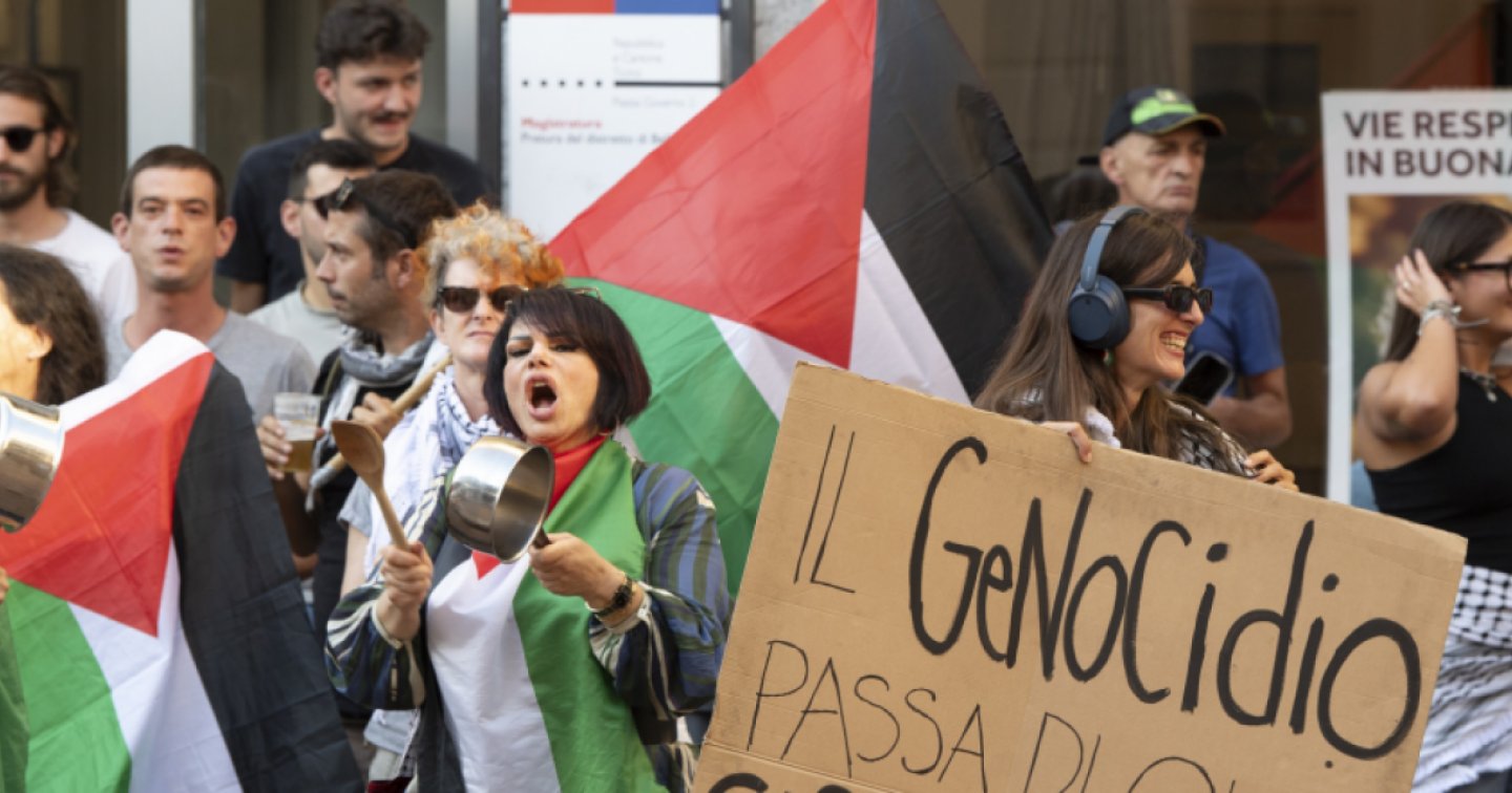 All’esterno della sala, il Coordinamento unitario a sostegno della Palestina aveva convocato un presidio “rumoroso”: slogan, fischietti, pentole battute e striscioni. La manifestazione era partita in modo pacifico, ma con l’arrivo degli invitati la situazione è degenerata: prima provocazioni reciproche, poi spintoni, stoviglie rotte e tavolini rovesciati.