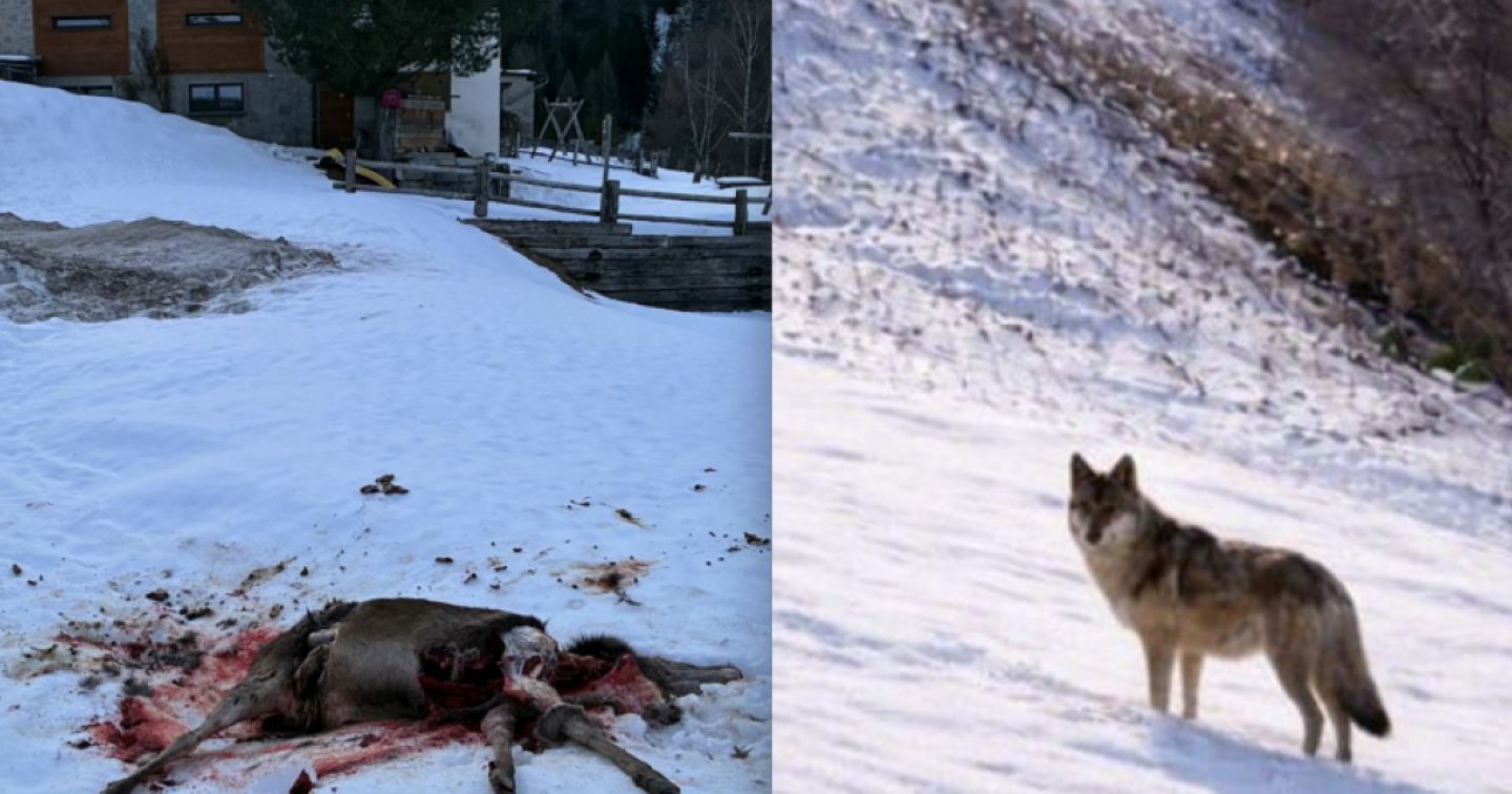 NELLA FOTO: UNA PECORA SBRANATA L'ALTRO GIORNO A BEDRETTO E UN LUPO FOTOGRAFATO LA SETTIMANA PRIMA SUI MONTI DI RONCO SOPRA ASCONA