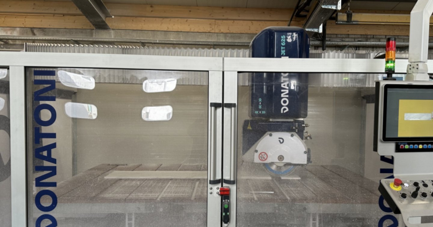 "Si tratta di un macchinario di ultima generazione, che taglia e lavora i materiali grazie al suo disco e ai diversi utensili diamantati muovendosi su cinque assi cartesiani. Questa caratteristica tecnica la rende estremamente flessibile e capace di effettuare un’ampia gamma di lavorazioni, riducendo i tempi e ottimizzando gli scarti.